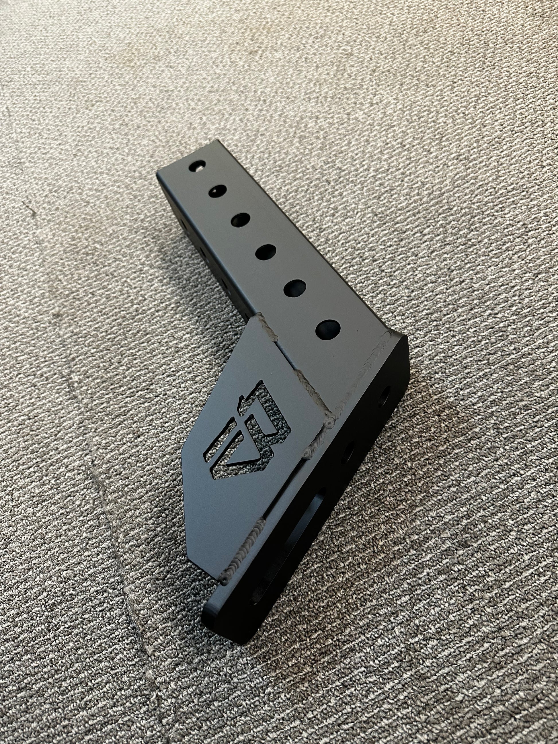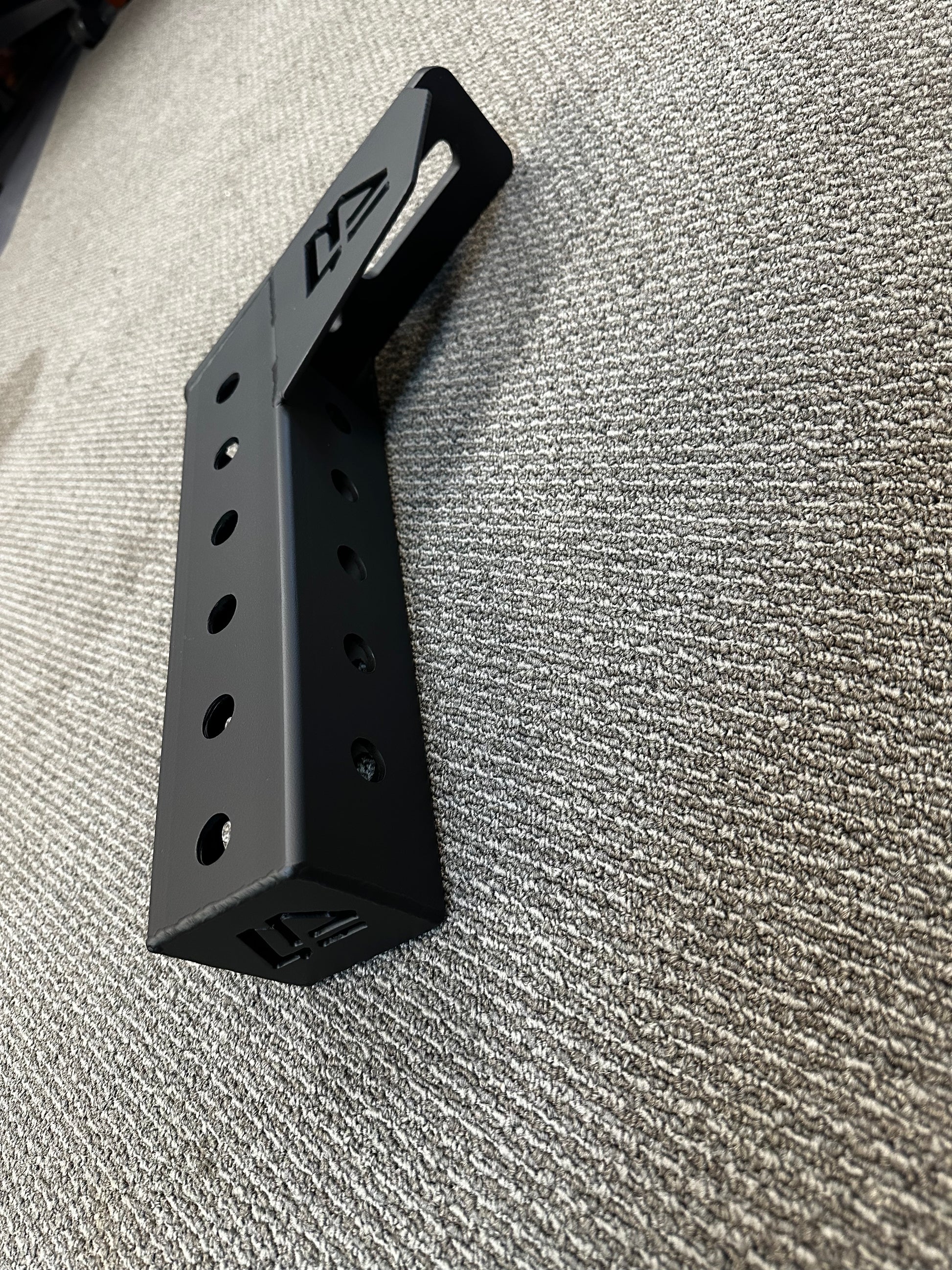 These extension arms come off the front of the rack at an angle allowing you to raise your pull-up bar higher from the floor. They are 14” long and use 3"x3" 11 gauge square tubing. Pull up bar is not included. This product is only recommended for racks that are mounted to the floor or wall. These are made to order. Please allow 6-8 weeks before the item ships.